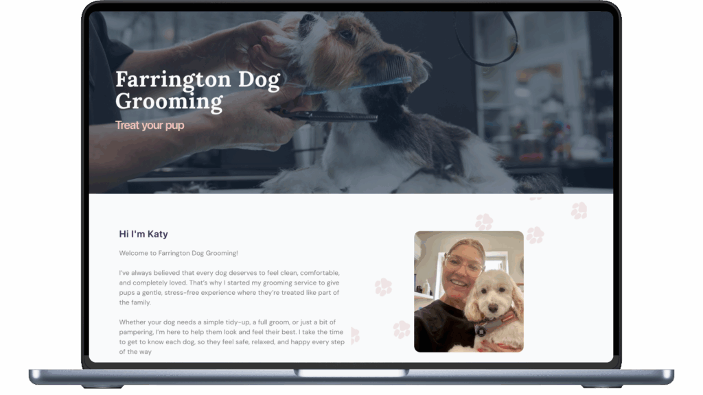 When Katy first approached me, she didn’t have an existing brand. We discussed her vision for the website and the unique style of her dog grooming salon. From there, I translated that vision into a digital experience that reflects the look, feel, and personality of her physical space.
